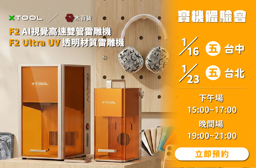 商品分類 合板 白俄椴木板 椴木板 1.8mm 椴木板 3mm 椴木板 5mm 椴木板 7mm 楊木合板 楊木合板 3mm 楊木合板 5mm 雷切用 樺木合板 雷切用 樺木合板 2mm 雷切用 樺木合板 3mm 雷切用 樺木合板 5mm 胡桃合板 單面胡桃合板 2.7mm 單面胡桃合板 5mm 雙面胡桃合板 2.8mm 雙面胡桃合板 5mm 柚木合板 單面柚木合板 2.7mm 單面柚木合板 5mm 雙面柚木合板 2.8mm 雙面柚木合板 5mm 素面合板 素面合板 2.6mm 素面合板 5mm 素面合板 8mm 樺木合板 樺木合板 4mm 樺木合板 15mm 其他合板 OSB/歐松板 木心板 植纖板 植纖板 1.3mm 植纖板 2.85mm 植纖板 4.85mm 密集板|木集板 雷切用密集板 1.2mm 亞洲密集板 3mm 亞洲密集板 5.5mm 新松密集板 2.5mm 雷切用密集板 3mm 新松密集板 4.75mm 白密集板 2.65mm 木集板 1.75~2.8mm 實木|拼板 拼板 桐木拼板 5mm 桐木拼板 9mm 柚木指接 17mm 山毛櫸拼板 松木拼板 松木直拼 5mm 松木直拼 8mm 松木直拼 10mm 松木直拼 12mm 松木直拼 18mm 松木指接 18mm 松木直拼 30mm 松木 松木5mm 松木8mm 松木12mm 松木18mm 松木32mm 松木33mm 松木42mm 檜木實木 台灣檜木5mm 日本檜木3mm 日本檜木5mm 日本檜木10mm 日本檜木20mm 美國檜木 5mm 美國檜木 10mm 胡桃木 胡桃木5mm 胡桃木10mm 胡桃木20mm 楓木 楓木5mm 楓木20mm 亞杉/台灣杉 亞杉10mm 亞杉20mm 飛機木 飛機木 2mm 飛機木 3mm 飛機木 4mm 飛機木 5mm 山毛櫸 山毛櫸10mm 山毛櫸20mm 相思木 相思木 3mm 相思木 5mm 相思木 18mm 白橡 白橡 5mm 白橡 10mm 白橡 15mm 白橡 18mm 白橡 20mm 其他實木 桃花心木 3mm 桃花心木 5mm 紅檀香 4mm 台灣櫸 5mm 花梨木 5mm 花梨木 10mm 柚木 5mm 香杉 5mm 楊木 6mm 柳杉 10mm 柳杉 25mm 香榧木 17mm 橡膠木5mm 橡膠木10mm ABS|壓克力 透明壓克力 透明壓克力 1.5mm 透明壓克力 2mm 透明壓克力 3mm 透明壓克力 5mm 透明壓克力 10mm 單霧壓克力 毛玻璃壓克力 3mm 單霧壓克力 3mm 黑壓克力 3mm 單霧壓克力 5mm 高硬度壓克力 高硬度壓克力 3mm 高硬度壓克力 5mm ABS/彩色/其他壓克力 幻彩極光壓克力 ABS雙色板 1.3mm 白壓克力 3mm 黑壓克力 3mm 彩色壓克力 3mm 鏡面壓克力 1.8~3mm 金蔥板壓克力 3mm 角材|圓棒 角材/方棒 圓木棒/壓克力圓棒 工藝材料 木皮 無孔造型材質片 打孔造型材質片 木珠/小木塊 冰棒棍/火柴棒 木釘/木塞/檸檬片 皮革/印章皮/軟木片 黏土 其他工藝材料 DIY材料包|居家佈置 半成品材料 筷子材料 印章材料 杯墊材料 製筆/製碗材料 雷切型錄 居家佈置/生活用品 【品牌合作】笙傑 【品牌合作】手半屋 【品牌合作】Ugears 【品牌合作】致盈文創 【品牌合作】巧浣熊STEM教具 五金配件 把手 前扣 磁鐵 後鈕/活頁 胸針/別針 三角吊/掛鉤 護角/名片夾 D環/日型環 鑰匙圈/圓珠鏈 機芯/燈座/燈條 螺絲/釘子/膨脹釘 帳簿釘/鏡珠/玻璃銅止 角鐵 其他五金配件 研磨|拋光砂紙 砂紙 海綿砂布 拋光工具 砂帶/圓砂布片 研磨輔助工具 膠|漆|蠟|保養油 木器漆/護木油/保養蠟 稀釋劑 染色/著色劑 保養油/潤滑油 膠合/黏著劑 矽利康/熱熔膠 紙膠/雙面膠 除霉/清潔用品 水晶膠 鋸片|鑽頭|修邊刀 鋸片 鑽頭 修邊刀 手工具|夾具 夾具 A型夾 F型夾 C型夾 虎鉗 萬能鉗 其他夾具/配件 測量工具 尺/規 角度尺 游標卡尺 鋸子/切割刀 手工鋸 壓克力刀/美工刀 鉋刀 車刀 鑿刀/雕刻刀 螺絲起子 做榫工具 作業工具/安全防護 滅火器 保鮮膜 手套/眼鏡/耳塞 其他手工具 設備/桌椅收納 雷雕機/打標機 雷雕/打標機具 雷雕/打標配件 圓鋸機/裝潢圓鋸機 圓鋸機/裝潢圓鋸機具 圓鋸機/裝潢圓鋸機配件 UV印刷機 UV印刷機具 UV印刷機配件 CNC雕刻機 CNC雕刻機具 CNC雕刻機配件 電鑽/起子機 電鑽/起子機具 電鑽/起子機配件 線鋸機 線鋸機具 線鋸機配件 帶鋸機 帶鋸機具 帶鋸機配件 木榫機 木榫機具 木榫機配件 砂磨機 砂磨機具 砂磨機配件 砂帶機 砂帶機具 砂帶機配件 砂光機 砂光機具 砂光機配件 刻磨機 刻磨機具 刻磨機配件 切斷機 切斷機具 切斷機配件 修邊機 修邊機具 修邊機配件 鉋木機 鉋木機具 鉋木機配件 車床 車床機具 車床配件 鑽床 鑽床機具 鑽床配件 集塵機 集塵機具 集塵機配件 釘槍 釘槍機具 釘槍配件 空壓機 空壓機具 空壓機配件 其他工具設備 桌椅/收納 角鋼架/木工桌/椅子 零件櫃/工具車 企業合作專區 【品牌合作】Ugears 【品牌合作】笙傑 【品牌合作】手半屋 【品牌合作】致盈文創 【品牌合作】創藝天時 【品牌合作】巧浣熊STEM教具 【品牌合作】MOMOCAT摸摸貓 生科競賽 生科競賽材料 【特賣出清】 木材出清 壓克力出清 其他類出清 近期文章 LaserPecker 5 使用 USB 隨身碟進行雕刻 迎戰台灣潮濕季!木材發霉的終極預防與處理指南(木百貨專家教你) 3D浮雕製作教學 LaserPecker 5開箱使用指南 最低出光率是甚麼?佔空比又是甚麼呢? 2024/8月FUN暑假免費裁 MORE 點此前往 點此前往 點此前往 特價商品 特價 加入購物車快速預覽 xTool F2 Ultra 可調脈衝光纖雷射雕刻機 221,980NT$ 原始價格:221,980NT$。199,980NT$目前價格:199,980NT$。 加入購物車 特價 立即預購!快速預覽 xTool F2 Ultra UV 透明材質紫外雷射雕刻機 169,980NT$ 原始價格:169,980NT$。154,980NT$目前價格:154,980NT$。 立即預購! 特價 立即預購!快速預覽 xTool F2 AI視覺高速雙管雷射雕刻機 53,980NT$ 原始價格:53,980NT$。49,980NT$目前價格:49,980NT$。 立即預購! 缺貨 查看內容快速預覽 【2025限定】材質片型錄-旋轉材料圖鑑盒 1,500NT$ 原始價格:1,500NT$。1,200NT$目前價格:1,200NT$。