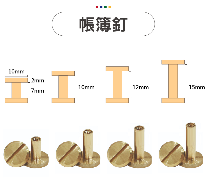 帳簿釘 | 公母螺絲釘 | 空心釘 | 公母釘 | 文具扣 | 子母鉚釘 | 中孔釘