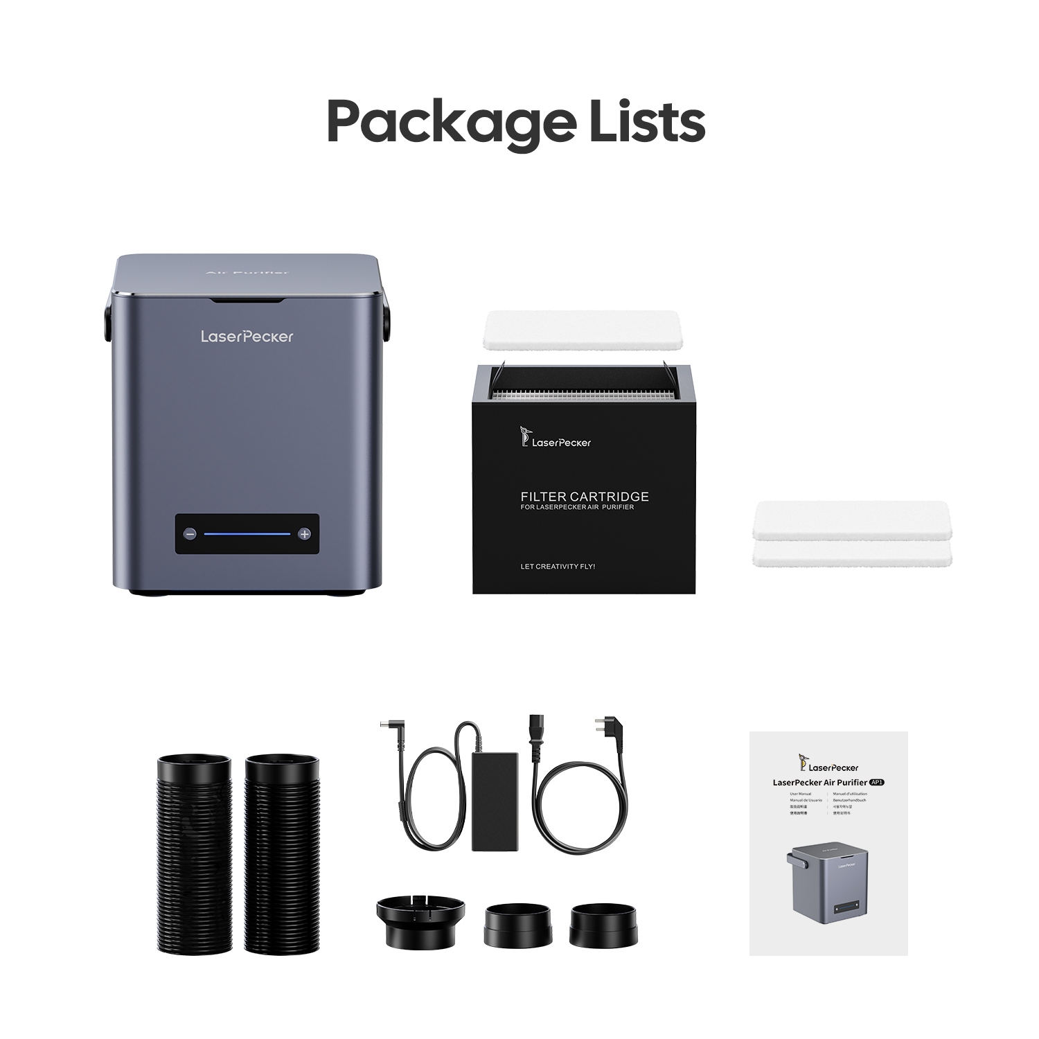 LaserPecker 桌上型空氣清淨機採用四層濾網系統,可過濾高達 99.97%、最小至 0.3 微米的細懸浮微粒。搭配雷射機使用,讓您隨時享受安心又清新的空氣。
