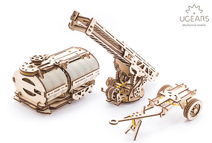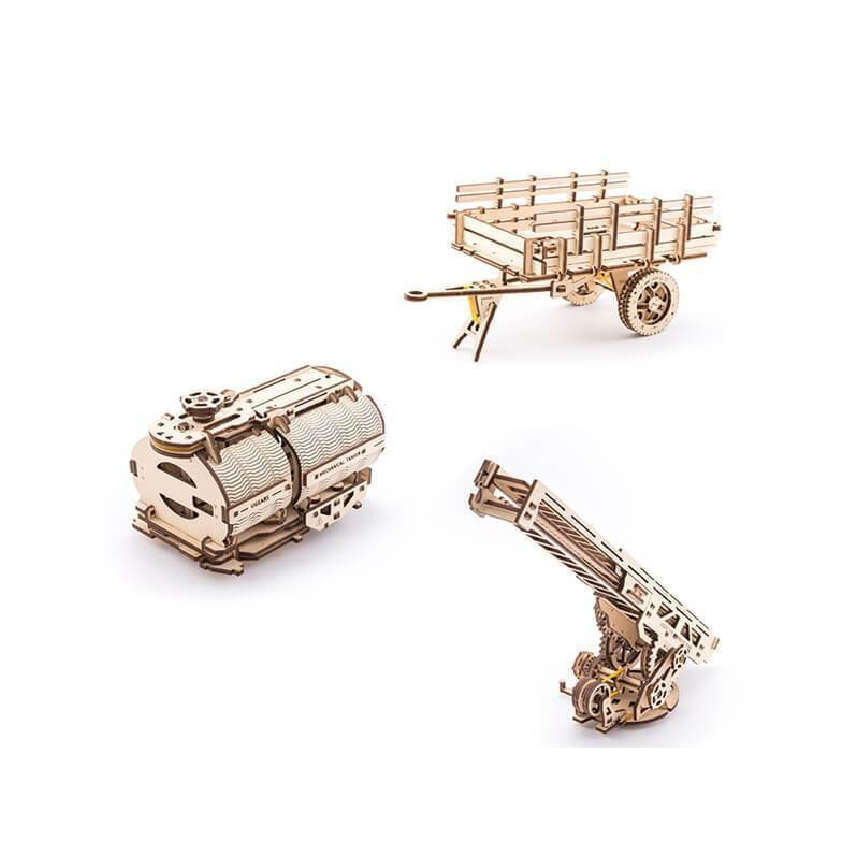 與三種不同的配件搭配:油灌桶,雲梯,以及拖車後斗,讓你隨時能夠改變卡車的風格為消防雲梯車、油罐車、農村拖車