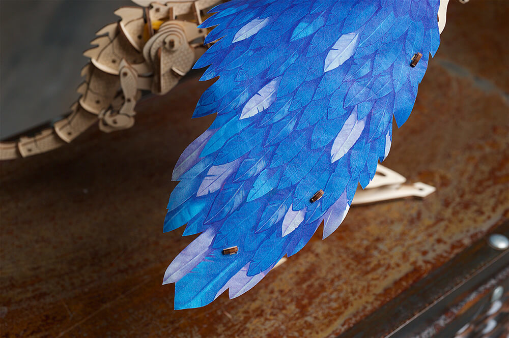 翅膀為設計精美的羽毛形狀紙翅膀,柔軟而靈活的材質讓飛行更加逼真。