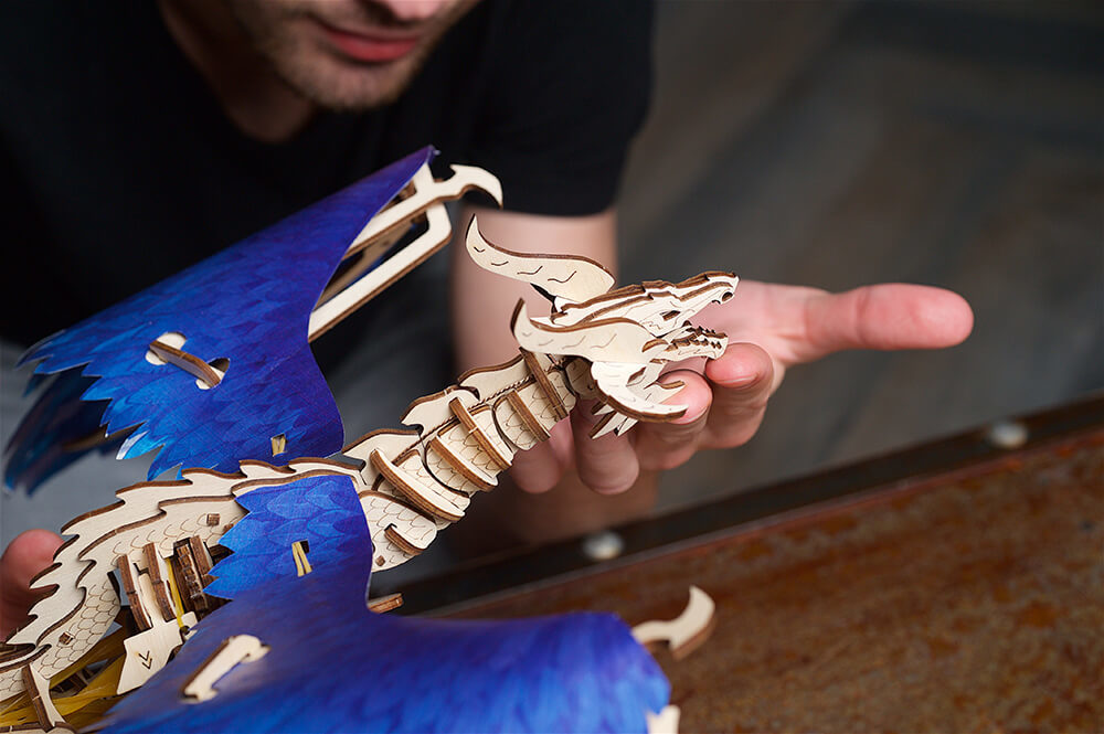 要賦予這個模型生命只需旋轉龍胸前的鑰匙,並拉動啟動桿來釋放動力。