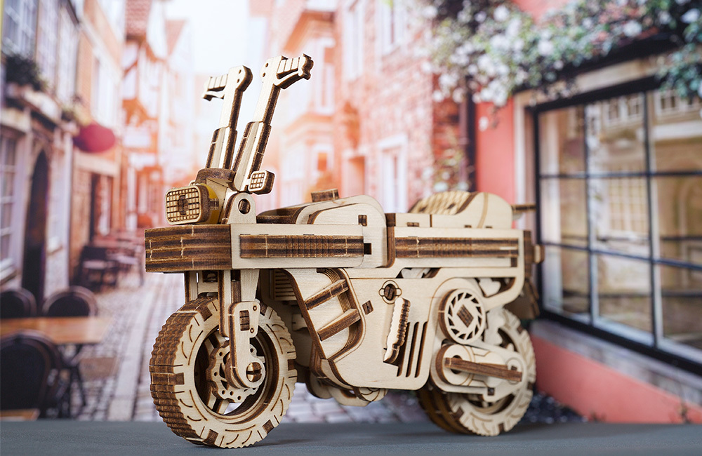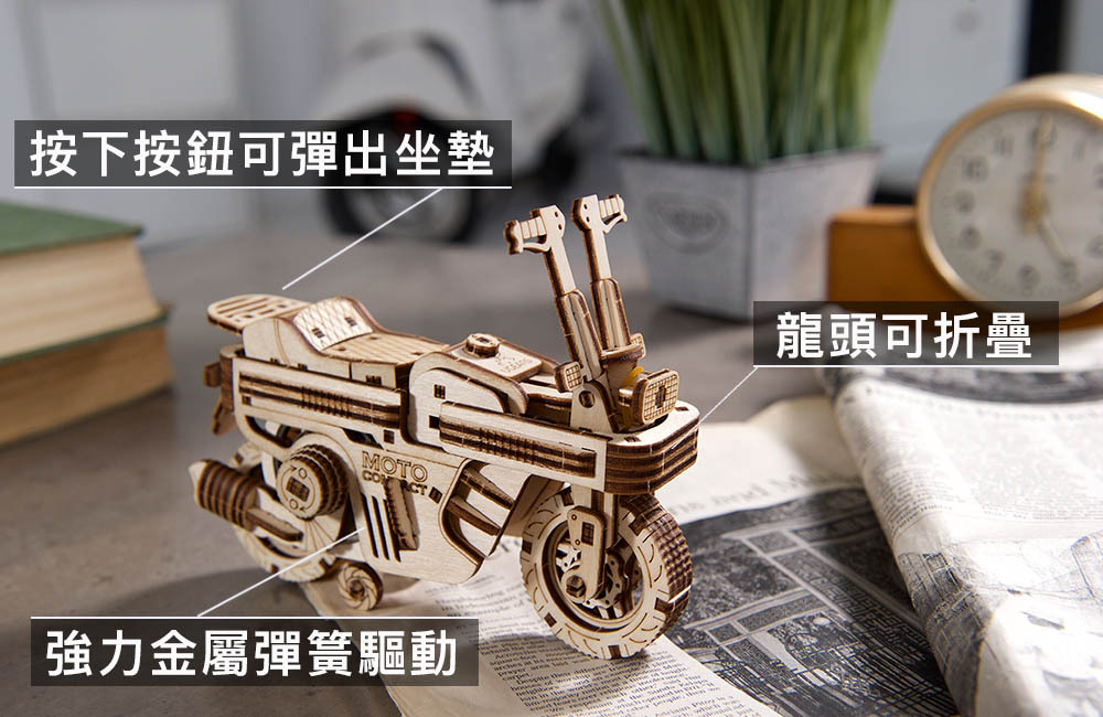 除了Ugears摩托車基本的避震和腳踢板之外,還配有強力的彈簧椅墊+可折疊的機關,節省你的收納空間