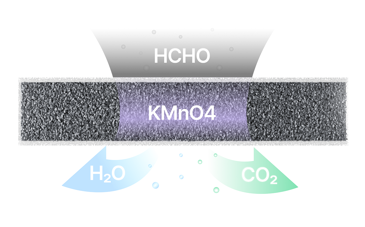 甲醛過濾器持續捕獲和分解有害的甲醛分子,將它們分解成無害的水和二氧化碳,以進行更徹底的淨化。